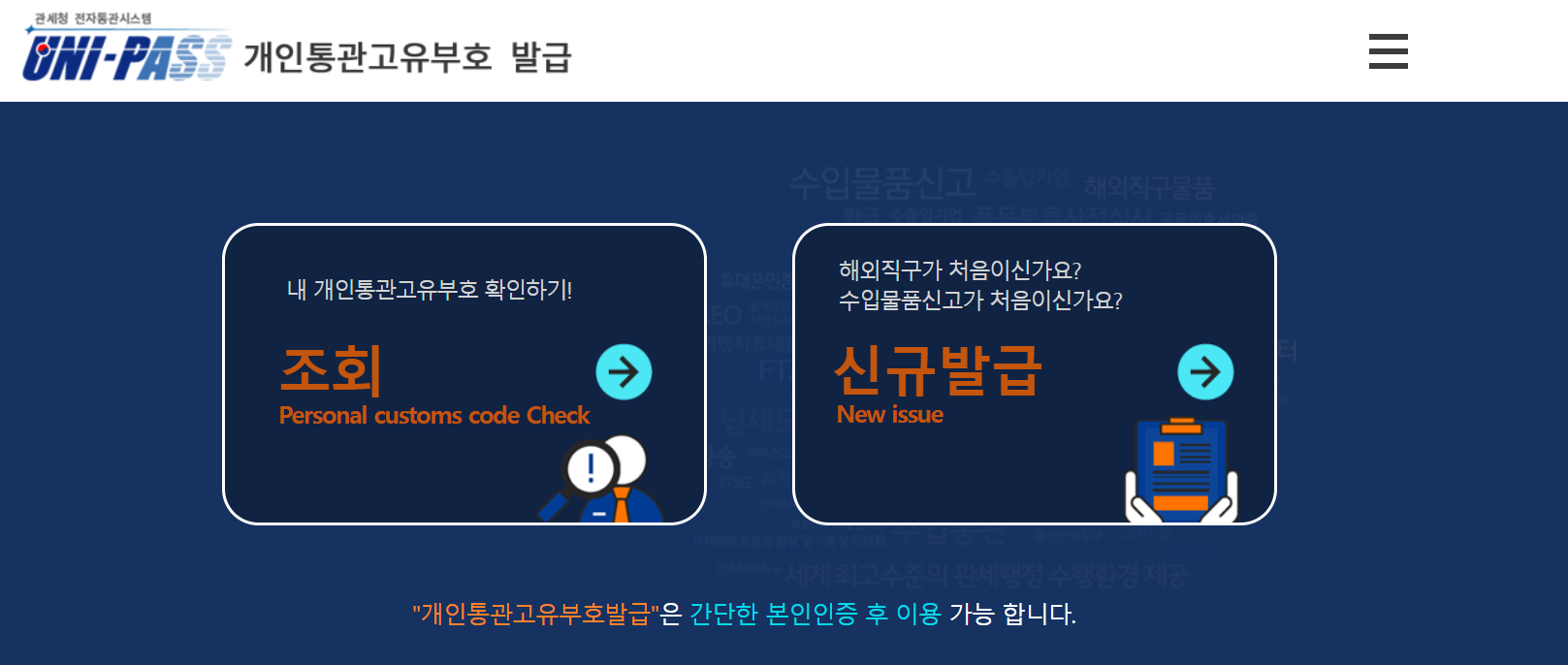 - 타인 명의나 중복 번호는 통관 지연이나 제재 대상이 될 수 있으므로 반드시 본인 명의로 사용해야 합니다.