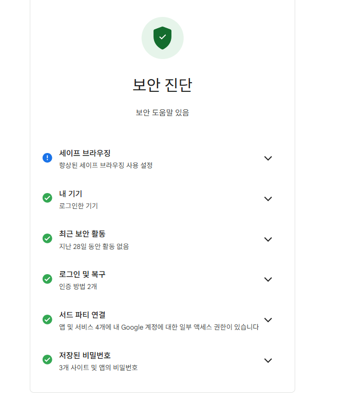 A. 보안 점검(Security Checkup)을 실행해 로그인 이력과 활동을 확인하세요.