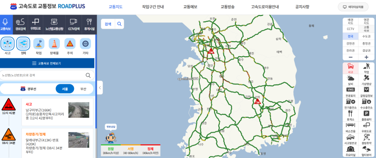 - 전국 고속도로 정체 구간, 돌발 상황, CCTV 영상 제공