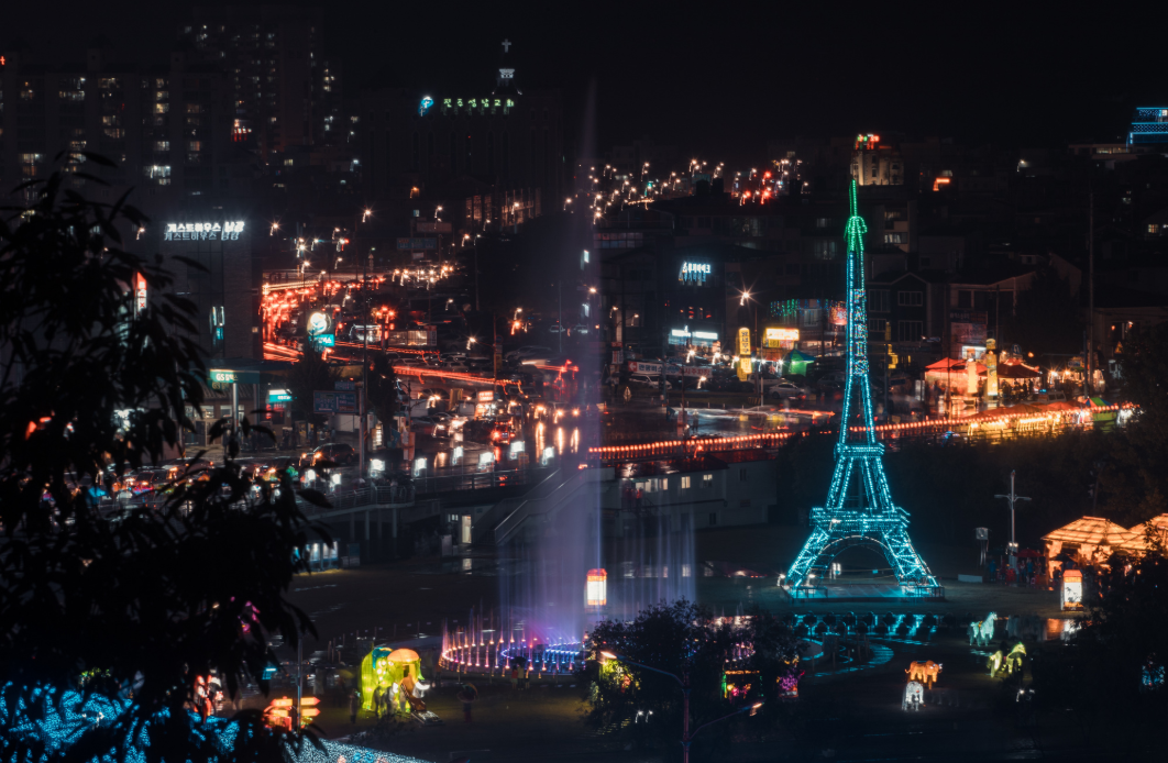 - 음악분수대 앞 : 음악과 조명이 함께하는 화려한 야경 포인트
