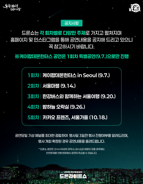 - 출차 제한: 제3·4주차장은 드론쇼 후 오후 9시 30분까지 출차 제한 가능성 있음