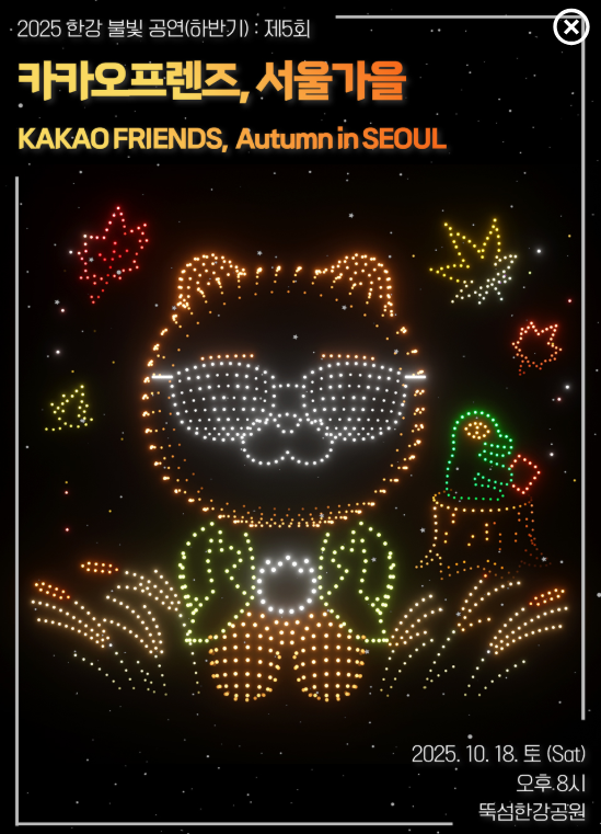 특히 카카오프렌즈와 함께하는 한강 가을밤은 사진으로도, 기억으로도 오래 간직될 특별한 경험이 될 것입니다.